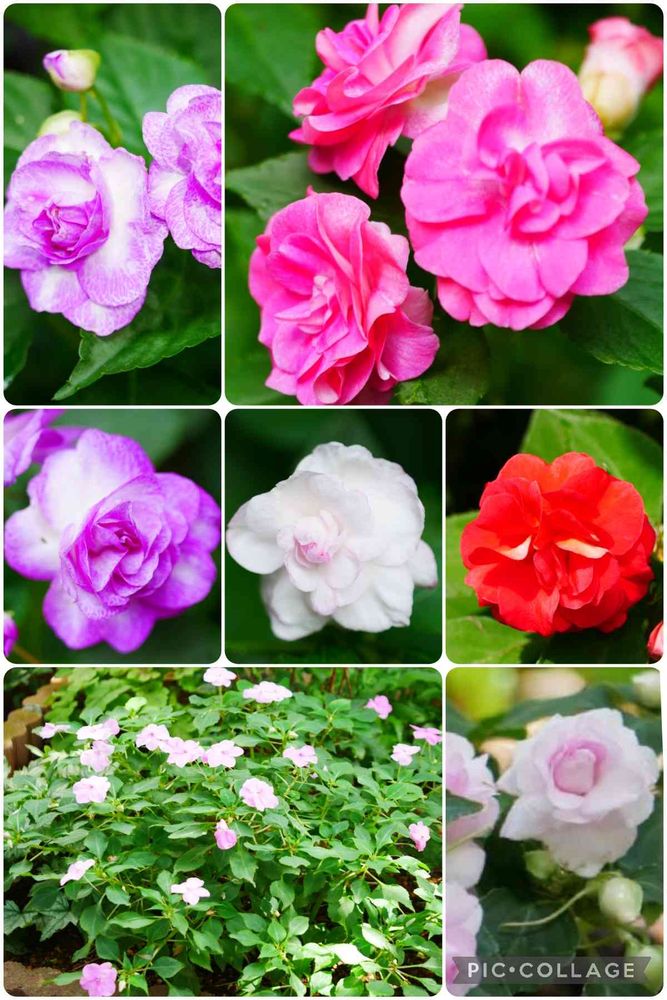 上5種類はイングリッシュガーデンで咲いていた、見事な八重咲きの「インパチェンス'カリフォルニアローズ フィエスタ'シリーズ」。