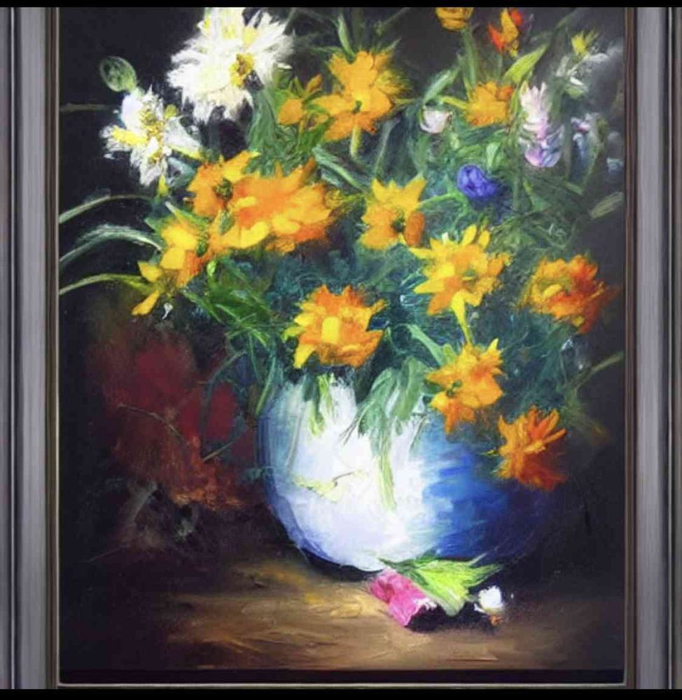 8K, アンナ・ピーターズ,花を描く,高品質,写実的,油絵, 風景画,木製額付きで全体的に描く