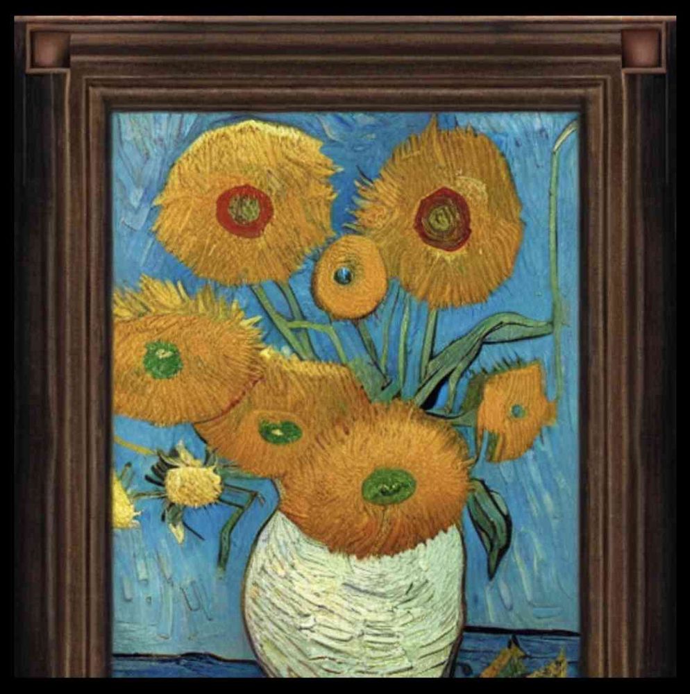 8K, ゴッホ,花を描く,高品質,写実的,油絵, 風景画,木製額付きで全体的に描く