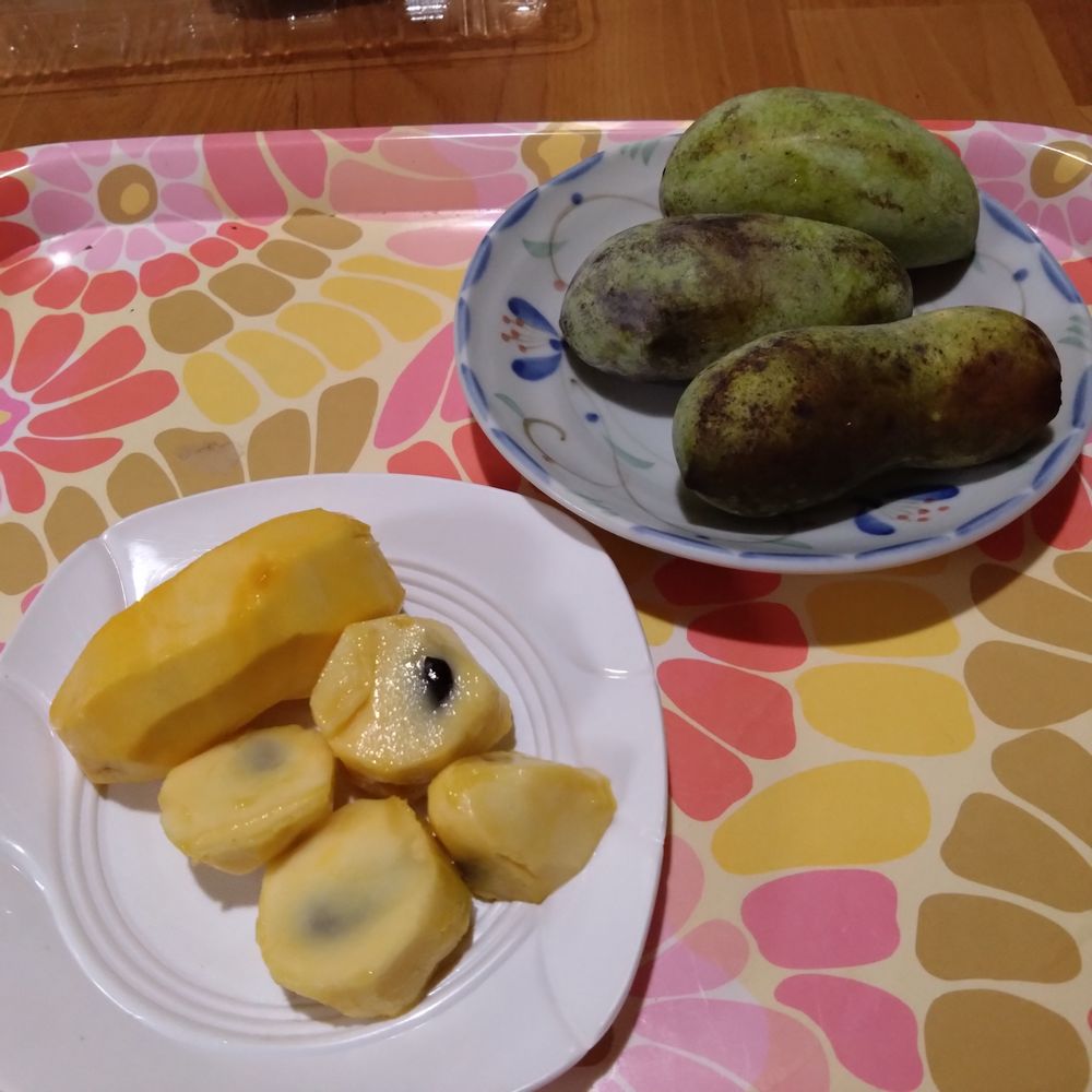 残ってたポポー4個のうち2個はジュクっとなっていて