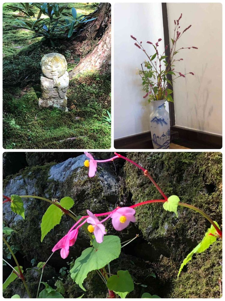↖️石仏が苔の間から、にっこり微笑んでいます。