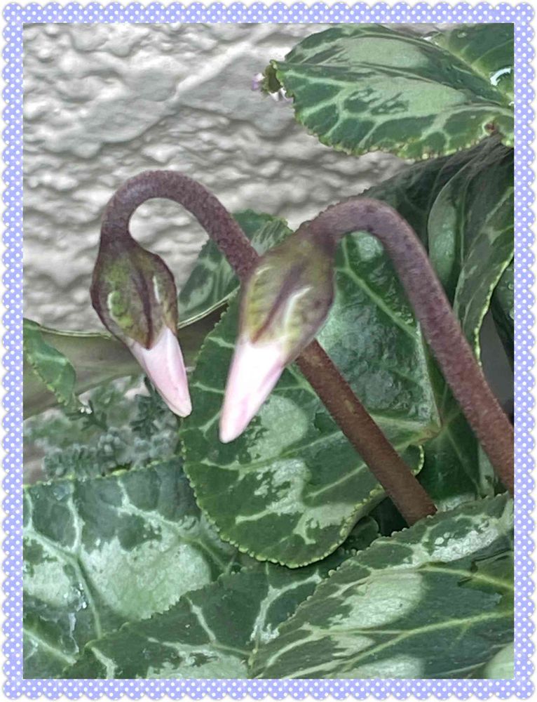 シクラメンの蕾が向かい合ってお話してるみたいですね✨✨✨
