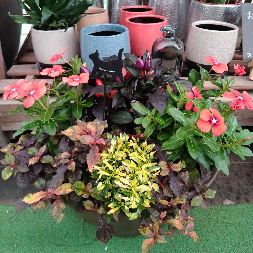 花トウガラシ“コンガ”と日々草“タトゥ”