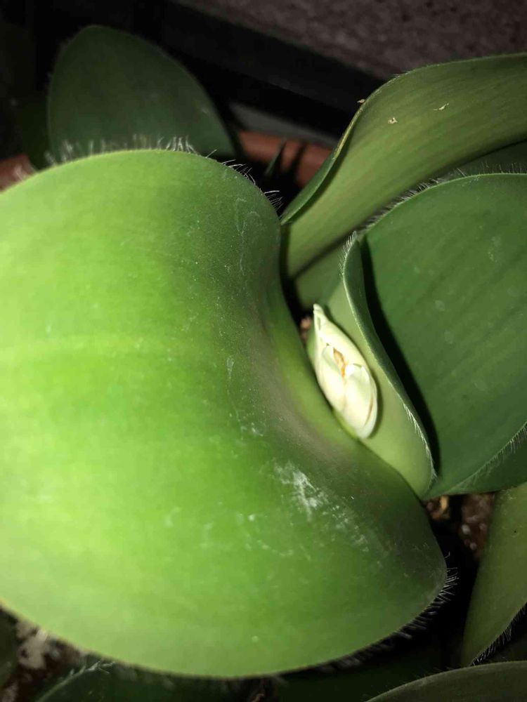 っていうか、私が待っていたのですが、ついに、植え替えをした鉢のマユハケオモトさんが、白い蕾を見せてくれました❇️