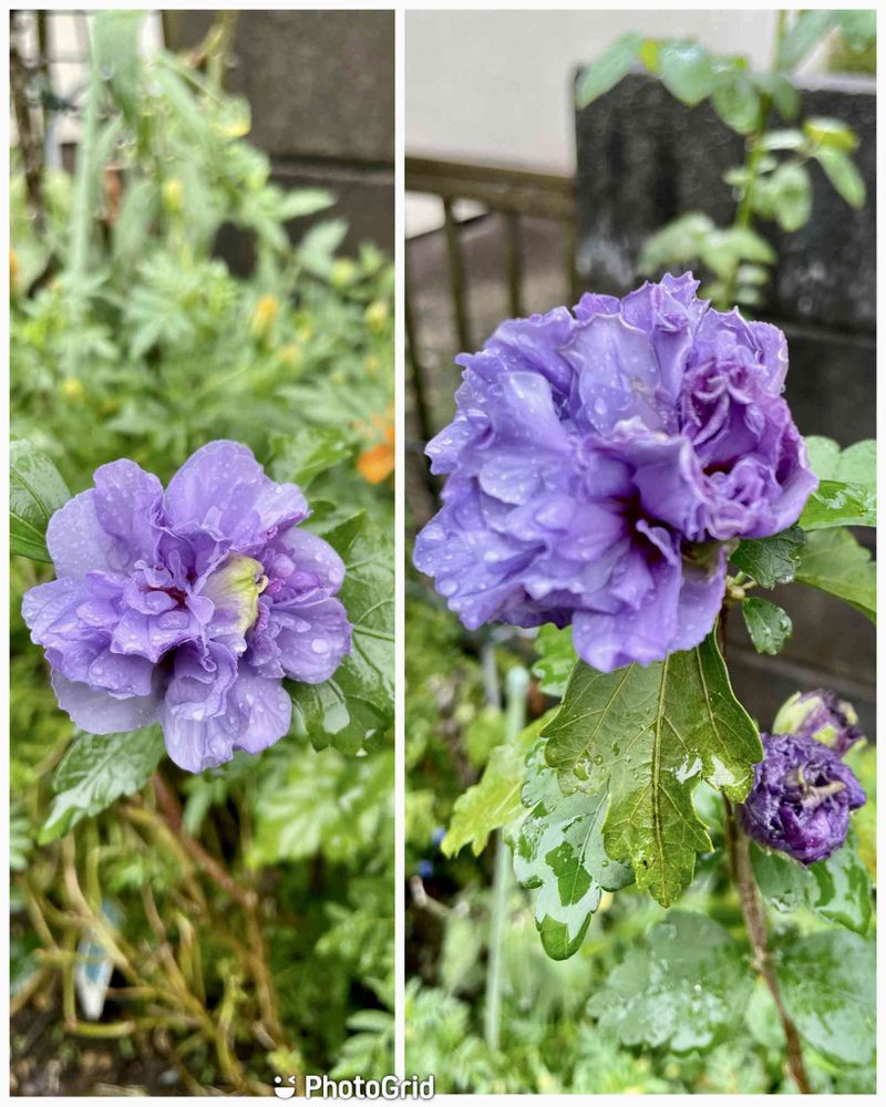 豪華な八重咲き、しかも私の大好きな💜む💜ら💜さ💜き💜雨にうたれて、水化粧した姿がまたまた素敵です。🙋