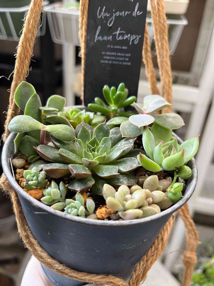 ハンギングがオシャレです😆おばあちゃんちの多肉ゾーン、ハンギングできるような場所がないので、ハンギングしてるのめっちゃ羨ましいです🤩