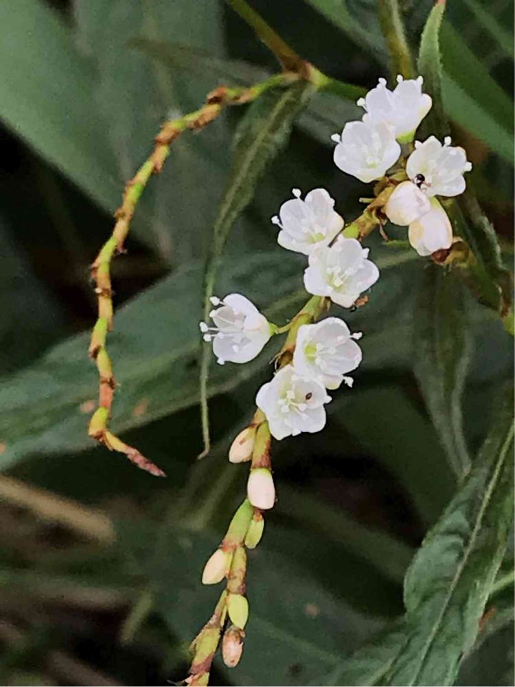 自然大好き派です😘。先日(9/27日)サクラタデをアップしましたが、その白花です😊。こちらは花穂が少し垂れ下がる形で咲くものが多いようです。花の中にちょっとだけ茶色く写っているのは蟻🐜さんです😅。生育環境はサクラタデと同じです😊。