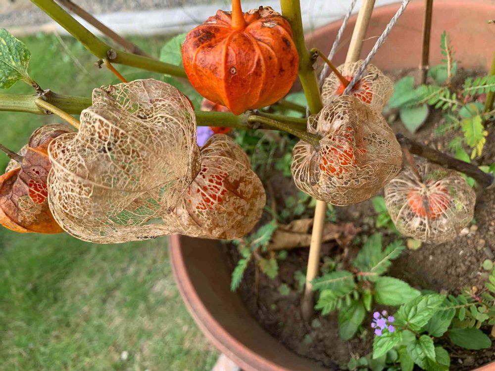 我が家のホウズキは、いつのまにか虫にやられて中のまんまるが無くなって外側だけになってしまいました😭😭😭