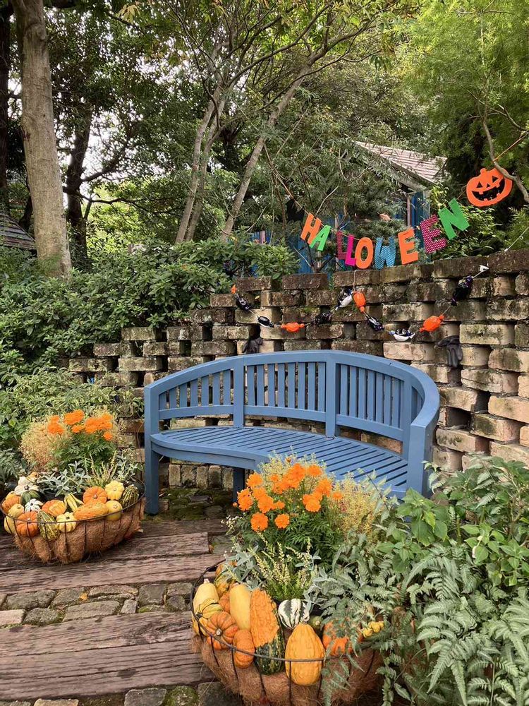 ベンチに腰掛けて、お花を🌼🌸🌿眺めて