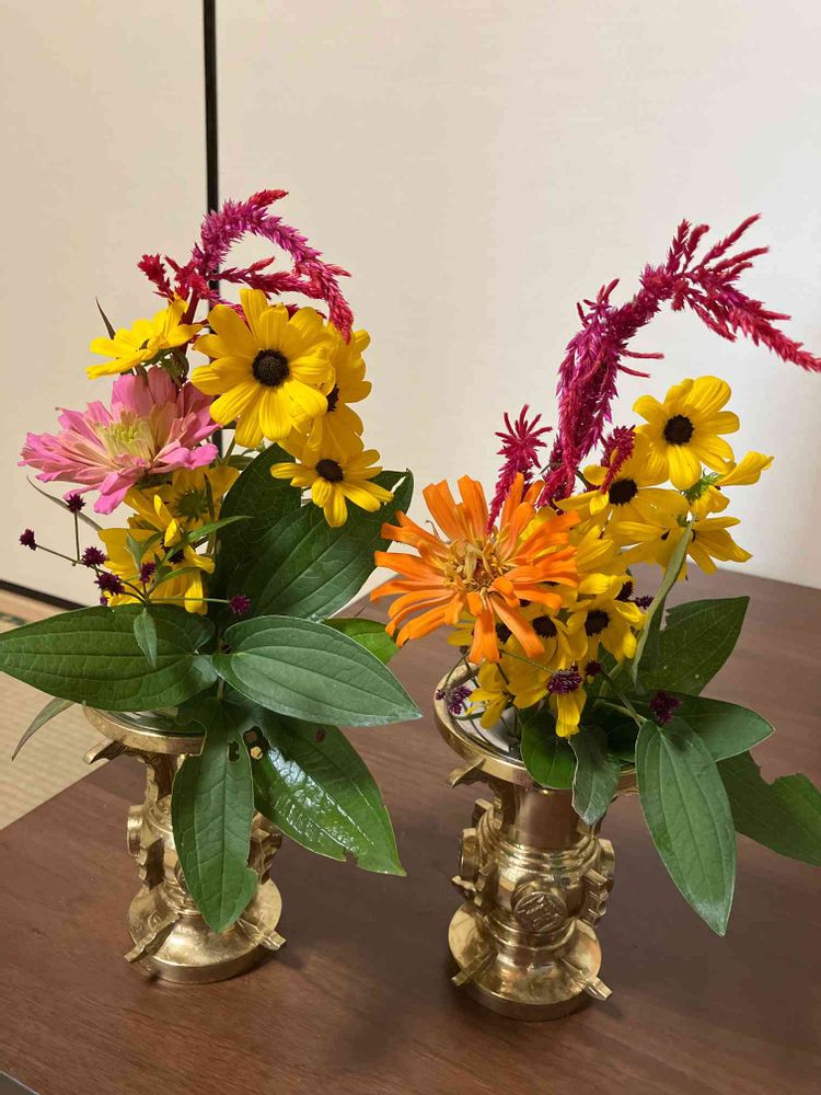 半夏生の葉はむしにやられています。もうケイトウも盛りを過ぎつつあります。