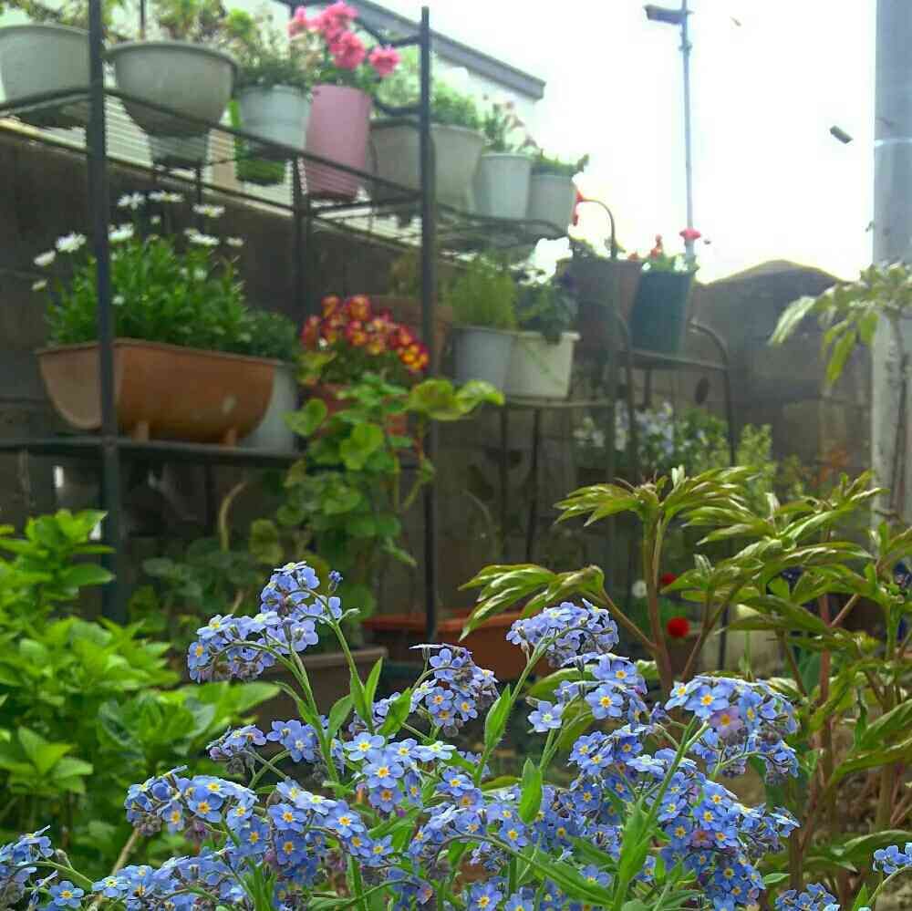 手前の忘れな草は昨年のこぼれ種からモリモリになってくれました😁