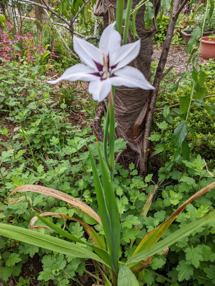 3月頃に、球根を植えていました。白色に中心が紫が、目を引きますね!🥳🌞