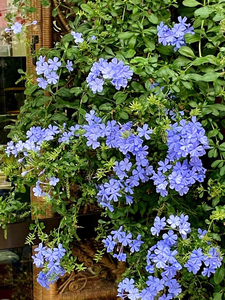 出勤途中で、通り道のお米屋さんのルリマツリです。
