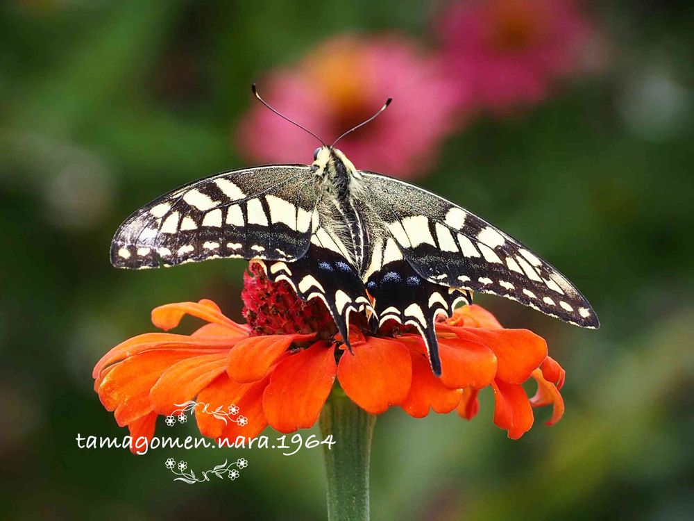tamagomen. nara.1964さんのナミアゲハ(並揚羽)☻,ヒャクチニソウ(百日草)☻,*☻Nara syokubutukannsatunikki☻*の投稿画像