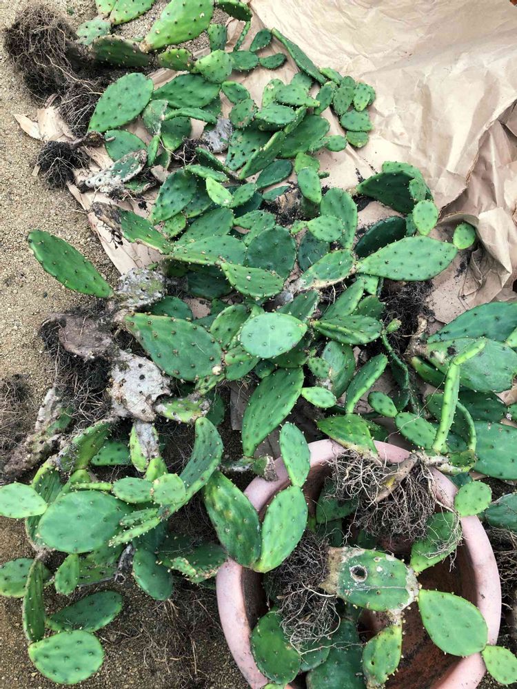 とりあえず鉢から抜いてバラしたウチワサボテン・・一株だけ芋🥔が出来ている子がいました😆 ✨✨実生の子かな⁉︎