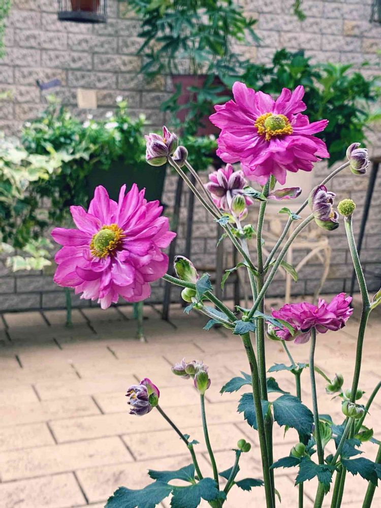 バルコニー/ベランダ,シュウメイギク,八重咲きシュウメイギクの投稿画像