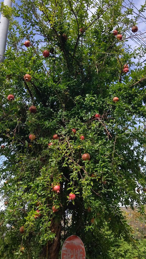 農家さん家って垣根があって道沿いに張り出すように果物が植えてあります。柿、ザクロ、🌰(痛!)