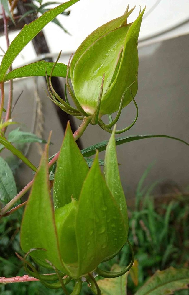 我が家のモミジアオイの種がお隣に飛んでったらしくて今年はお隣でも咲いていました。