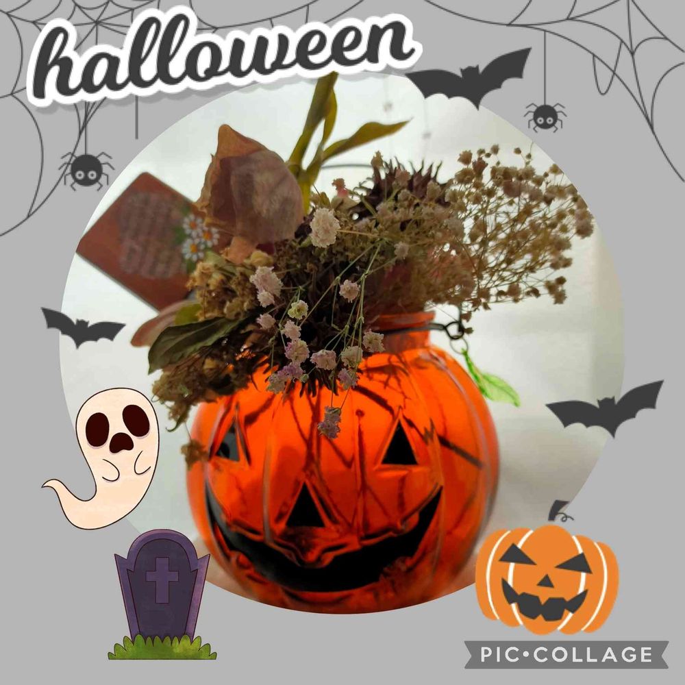 この🎃の容器、去年DAISOで確か200円で売っていたんですが、ガラスで出きていて、ワイヤーの取っ手も付いていて、ランタンぽくてオシャレ〜な感じでお気に入りなんです♪😆
