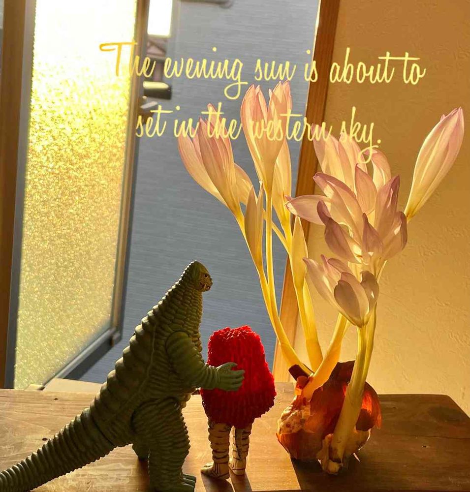 怪獣さん達なんだか夕日の中で何を言ってるのかなぁ…😅