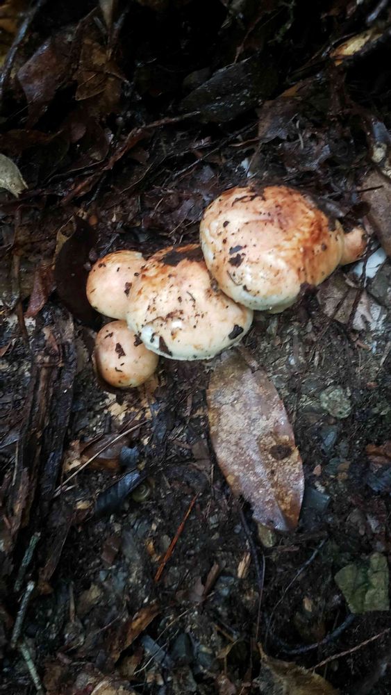 落ち葉の下に隠れてたキノコ4兄弟。夜に鍋に入れて美味しく頂きましたとさ