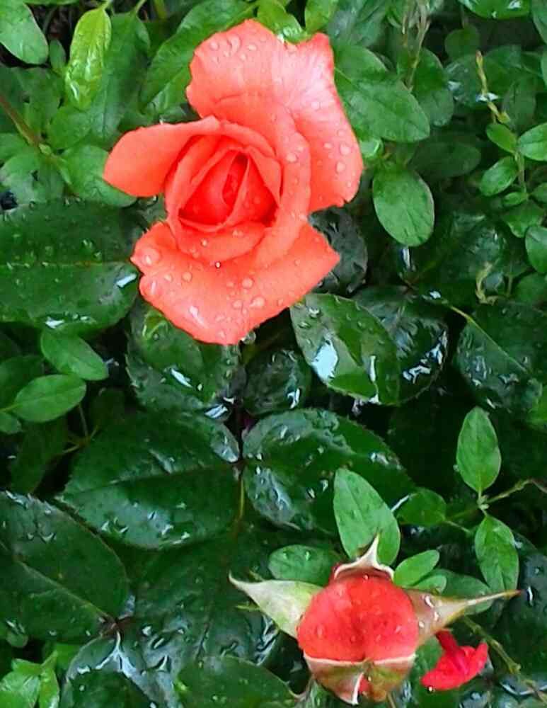 雨ですね〜☔️でも、花びらも葉っぱもツヤツヤしてる✨