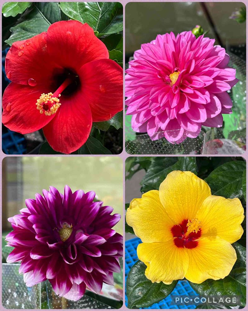 地元公共施設敷地内☆,ダリアとハイビスカス☆,野菜直売所*店頭の花の投稿画像