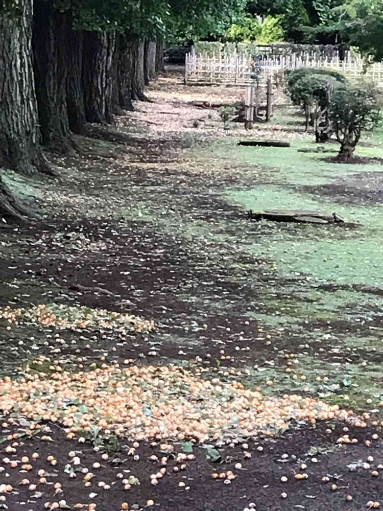 銀杏の並木。ギンナンがいっぱい落ちています。