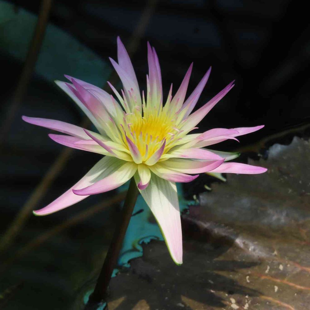 花弁が非常に細長く、これを大きく開くため水面上でも大変目立ちます。花弁元は白色で先端に行くほどピンクが濃くなります。