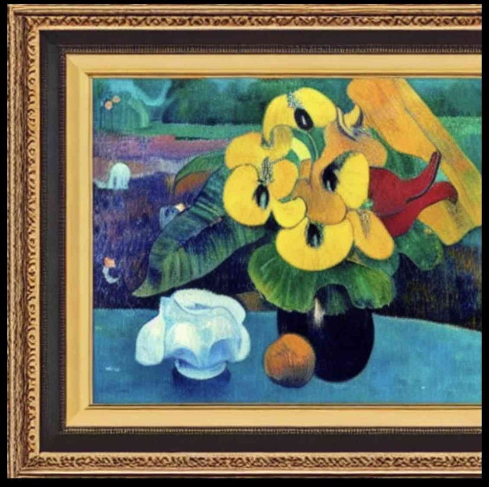 8K, ポール・ゴーギャン,花を描く,高品質,写実的,油絵, 静物画,木製額付きで全体的に描く