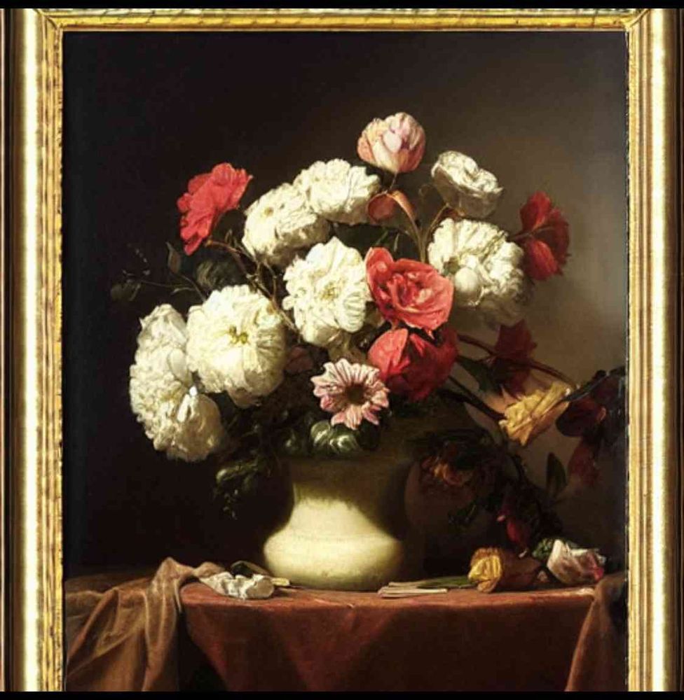 8K, バルトロメ・エステバン・ペレス ムリーリョ,花を描く,高品質,写実的,油絵, 静物画,木製額付きで全体的に描く