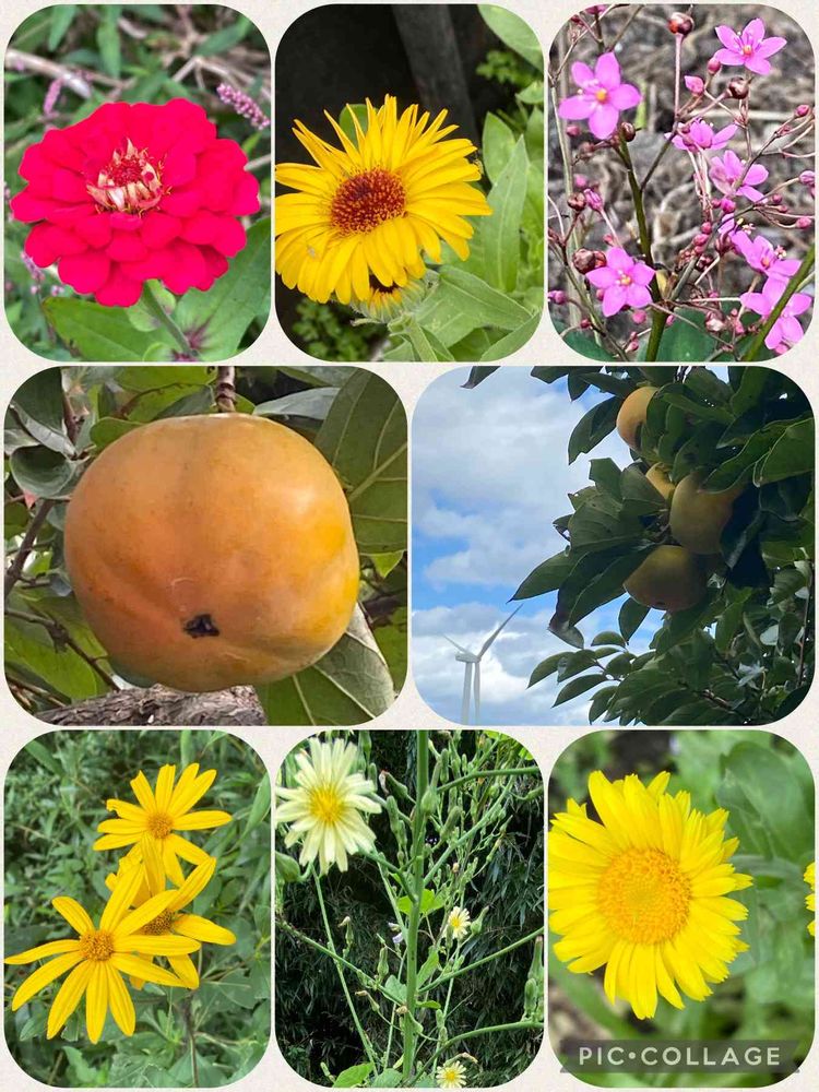 我が家の柿の木をとりまくこぼれだねからの花や野草達🍁