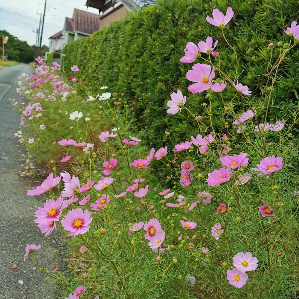垣根の外側のちょっとだけコスモス街道🤣去年よりたくさん植えてみました。