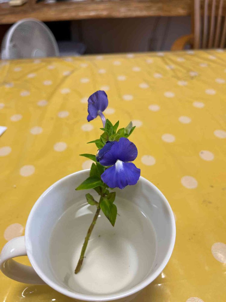 山であちこちあるとのこと。すぐ増えるといって折って分けてくれました。バタフライピーでなく、トレニアでもありません。何?