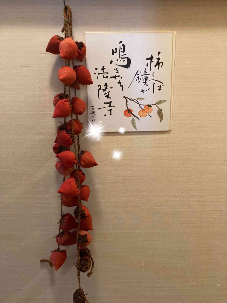少し前に色紙に書いた「柿食えば~」の句と一緒に廊下に飾ってみました🤗