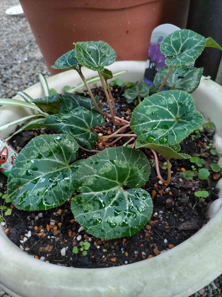 昨年の暮れに寄せ植え用にシクラメンを購入。寒い冬から暑い夏を乗り切ってくれました。蕾はまだないけど育ってくれるよう毎日祈っています👏👏👏