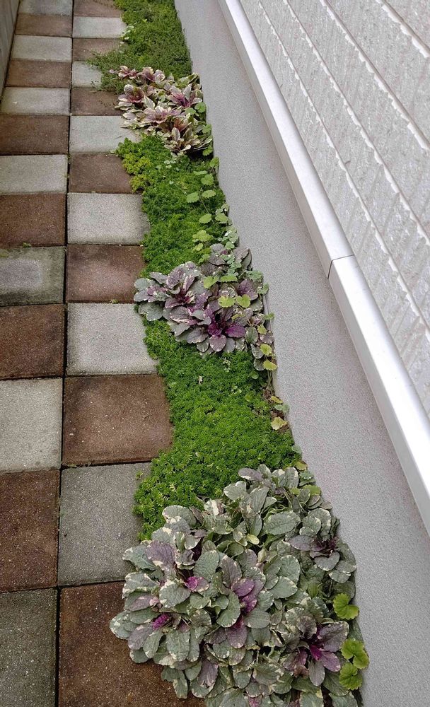ありがとうございます😊雑草避けに ブロックを敷いてセダムを移植してアジュガを植えて 放ったらかし地帯です😅