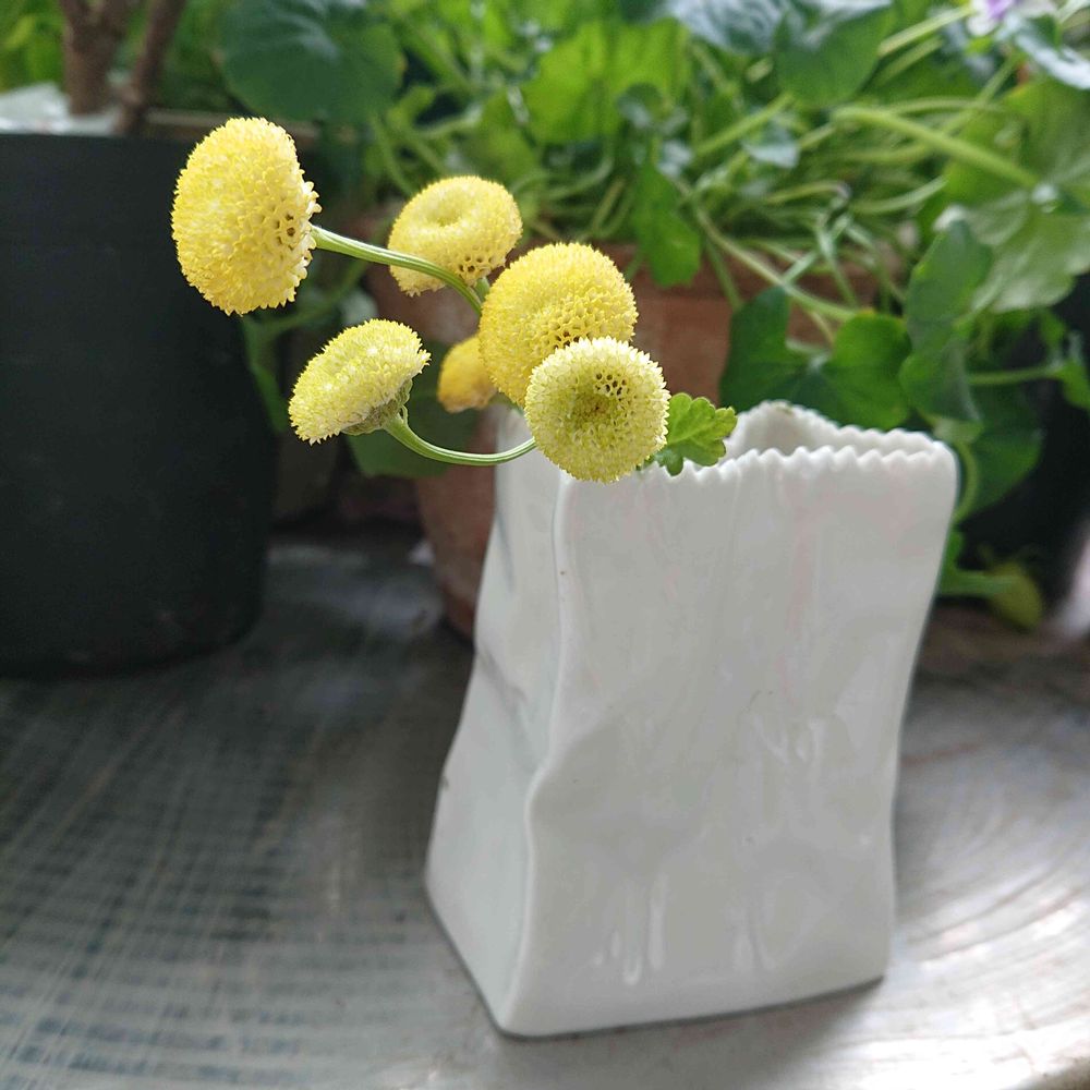 マトリカリアの白とこのイエローぺグモをあわせて飾ったらかわいいかもしれない、なんて思いました☺️
