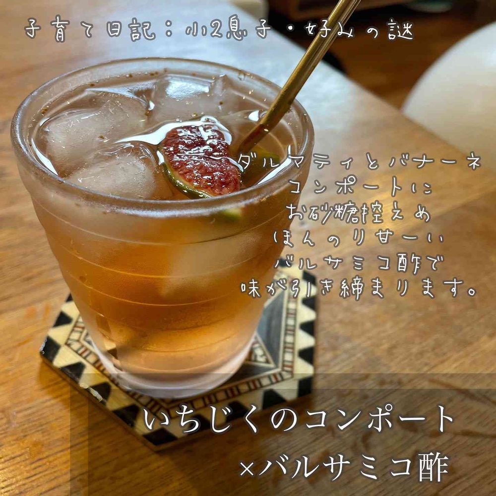 👨🌾特製#いちじくのコンポート をドリンクにしました🥤シロップに炭酸水or水を加え、仕上げにバルサミコ酢を少し垂らすだけでいちじく香るすっきりドリンクが出来上がりました✨