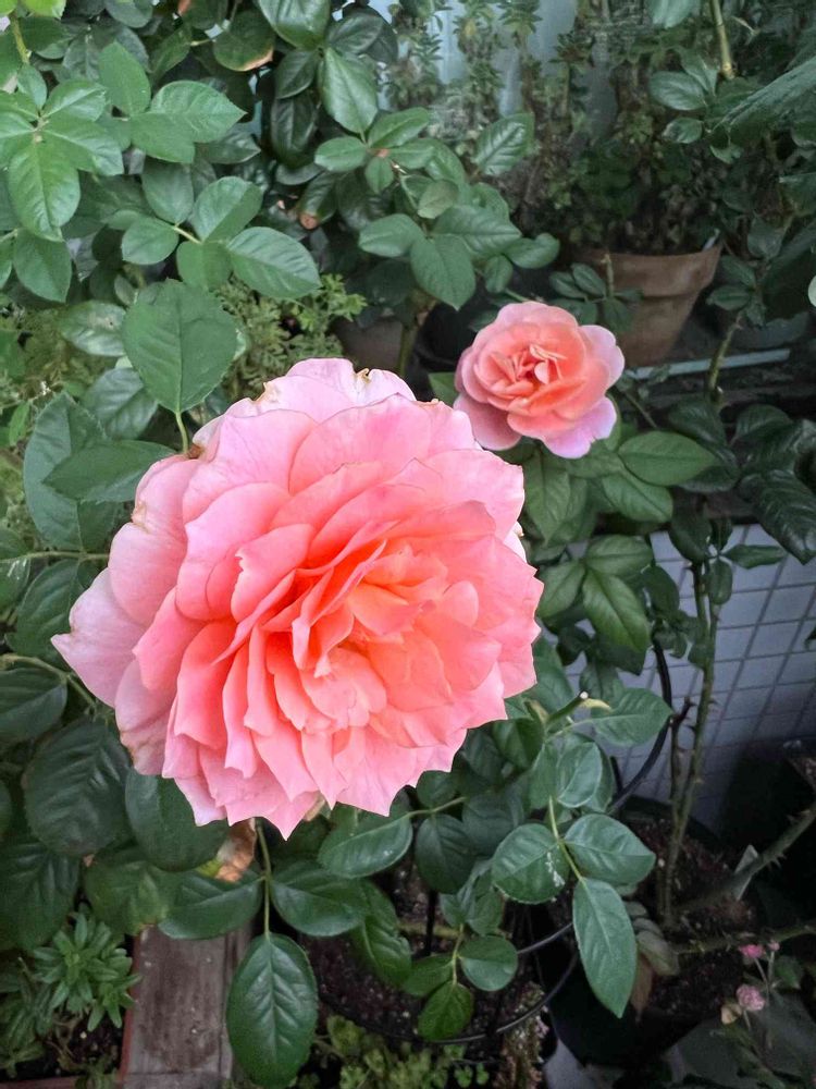 手前はボリデュールアプリコ🌹、奥はディスタントドラムズ🌹