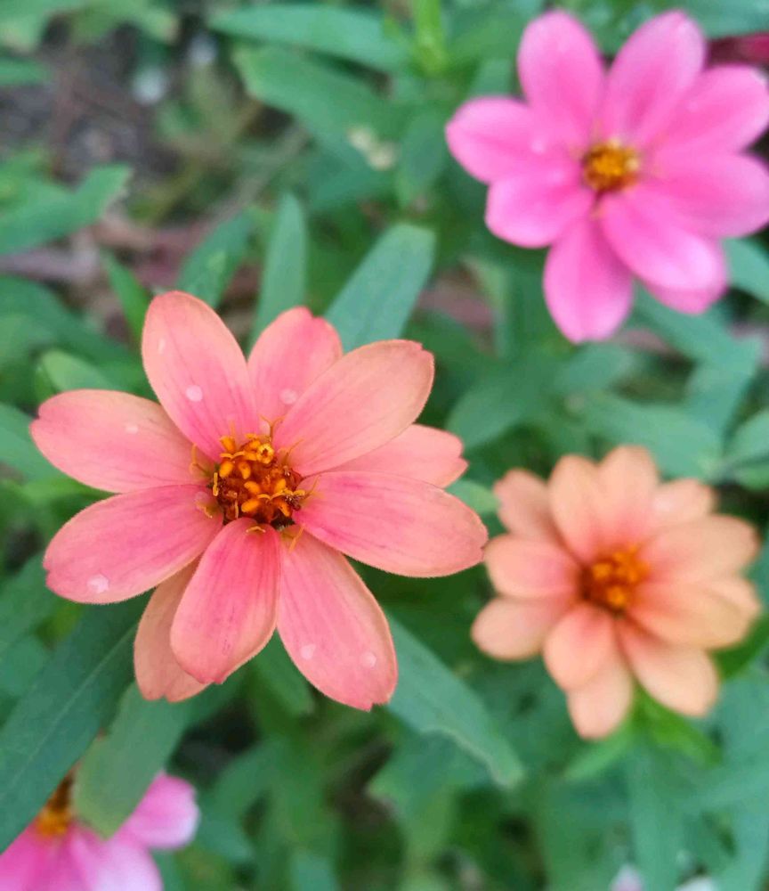 ジニアのピンクとアプリコットが