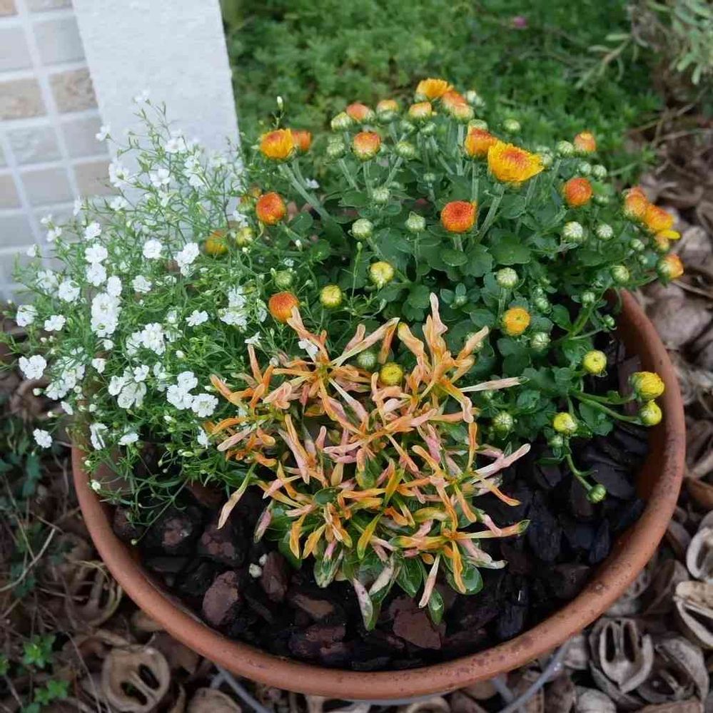 オレンジのガーデンマムジジ、