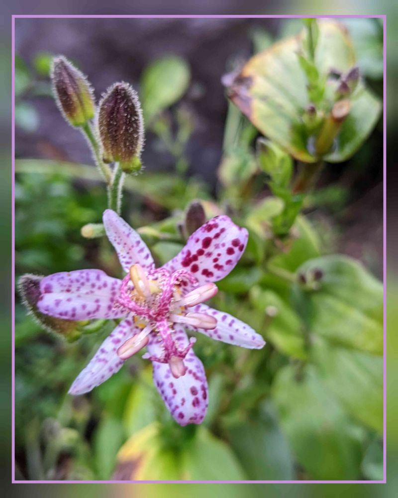我が家にいっぱいあるホトトギスとはお顔が違って可愛らしい(名前のせいかな❓)今は一本だけだけど増えてほしいな🎶😄
