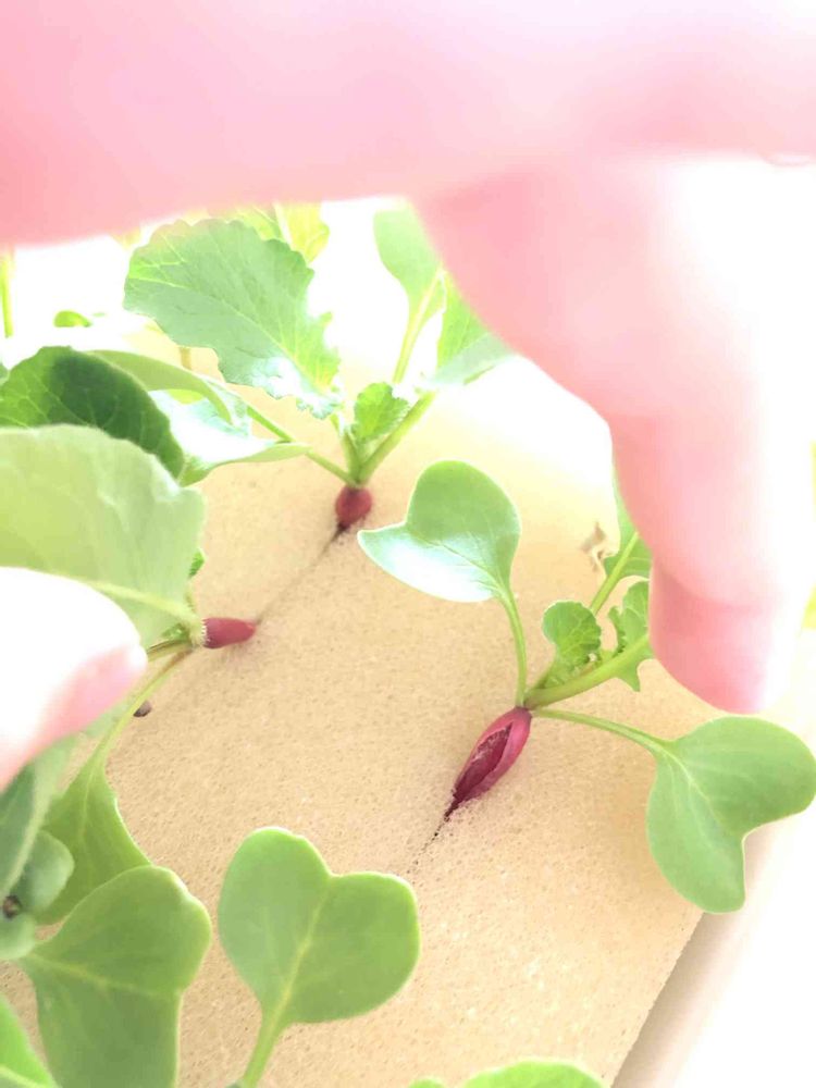 スポンジで栽培チャレンジ中の二十日大根(*^^*)