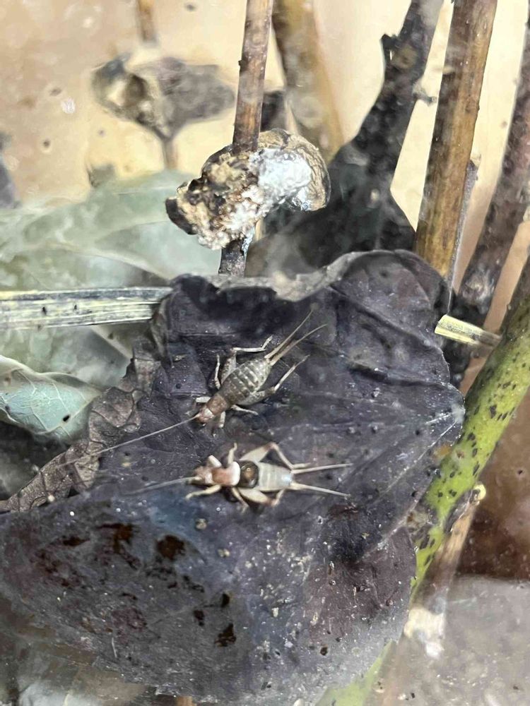 カネタタキはバッタ目カネタタキ科の昆虫でコオロギの一種ですが、コオロギは土中に卵を産み、カネタタキは木の枝に卵を産むところに違いがあります。雄の羽根も小さいですね😁