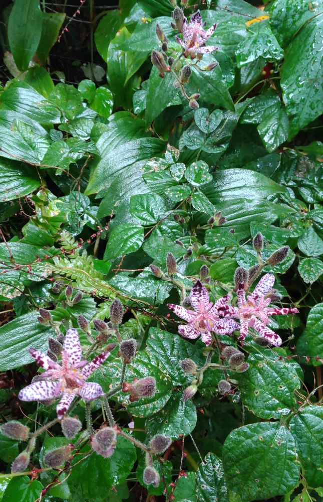 ☔の中でホトトギスのお花がようやく咲きました🤍💟