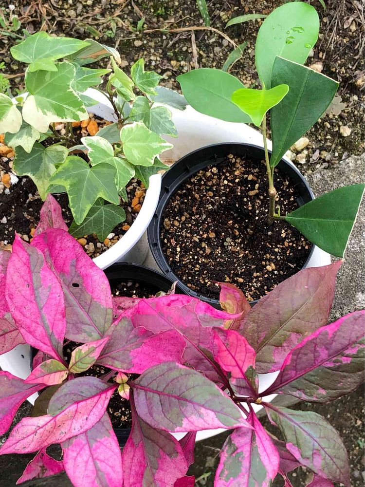 ガジュマルと赤葉千日紅…挿し木から元気に育ってくれました❣️