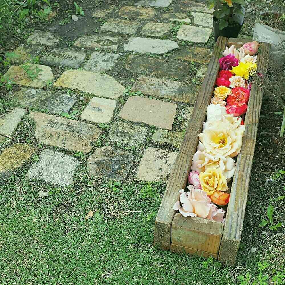 花ガラは防水にした木箱に水はって部屋に飾ってもナチュラルでかわいいです☆