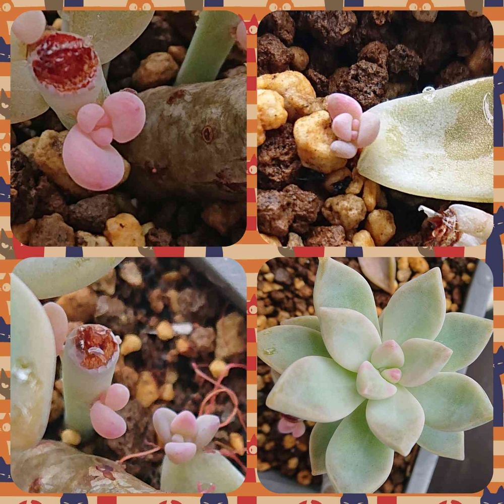 ゴースティン(桜牡丹)葉挿しと脇芽がピンクすぎて😍