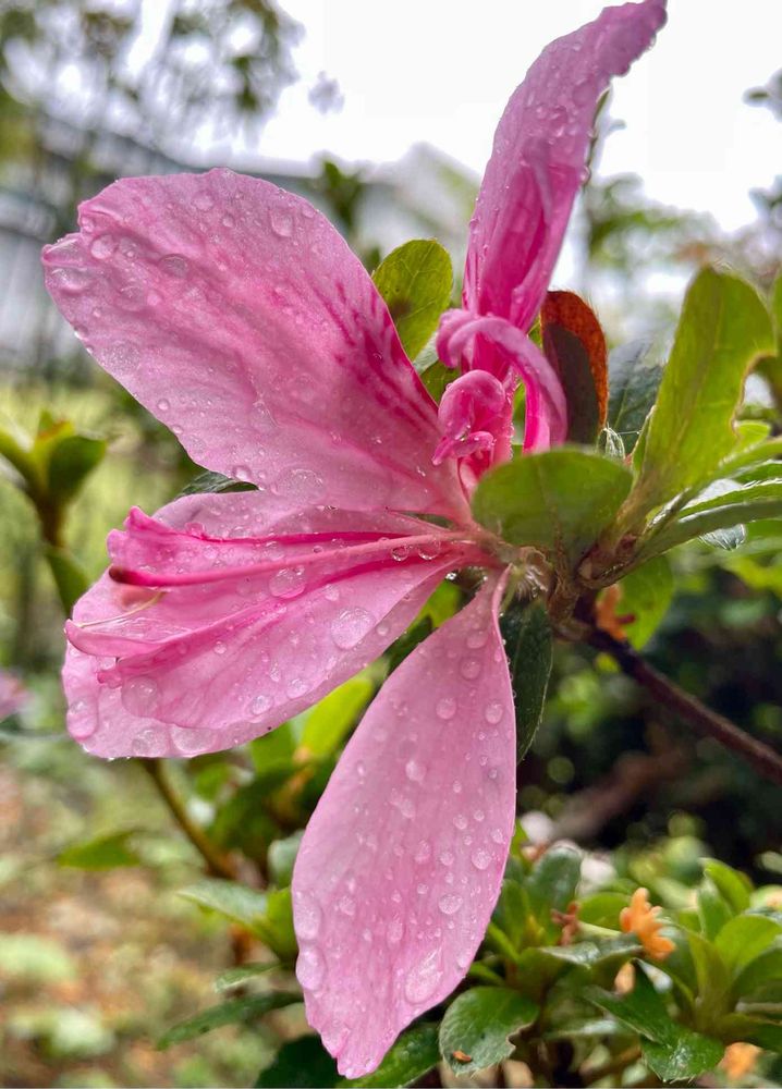 雨の日に☔️、季節外れのサツキの開花発見pic。